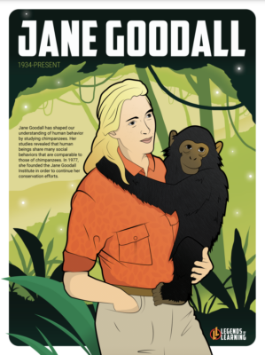 Jane Goodall has shaped our understanding of human behavior by studying chimpanzees. Her studies revealed that human beings share many social behaviors that are comparable to those of chimpanzees. Because of her work, Goodall was a trailblazer for women in the field of primatology. Women were not well accepted in the field when she first entered it, however, the number of women primatologists is now about equal to the number of men, in no small part due to Goodall’s work and her encouragement for other women to join the field. In 1977, she founded the Jane Goodall Institute in order to continue her conservation efforts.