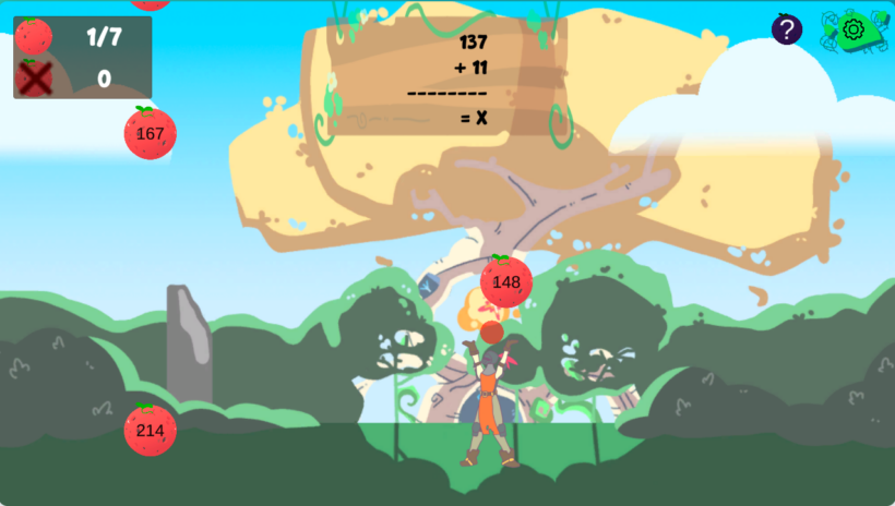 The player takes control of Sir Descartes, an adventurer in search of power. He needs to collect magic fruits, but not all fruits are good. He needs to use his skills in adding and subtracting to pick the right fruit. But be careful, in some cases, the magical fruits involve negative numbers, are you ready for the challenge?