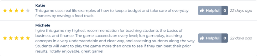 Teacher Reviews: don’t forget you earn Rewards Points for every review you write! So be sure to leave your feedback: you help other teachers pick the right games, you help students to get the best material available, you help us to learn which games we should make more of and you’ll help yourself to some well-deserved rewards! Talk about saving the day!