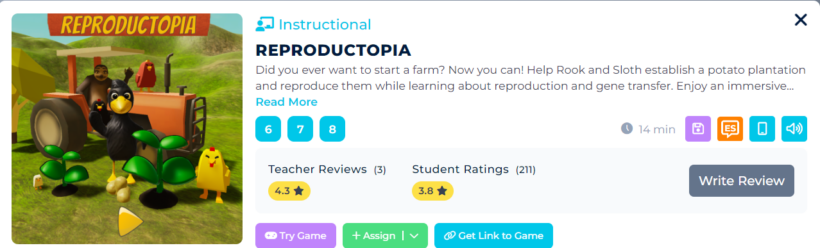 - Join Rook and Sloth in their scientific adventure and discover how Reproduction and Gene Transfer affect different organisms. Find Reproductopia featured further on in this post.