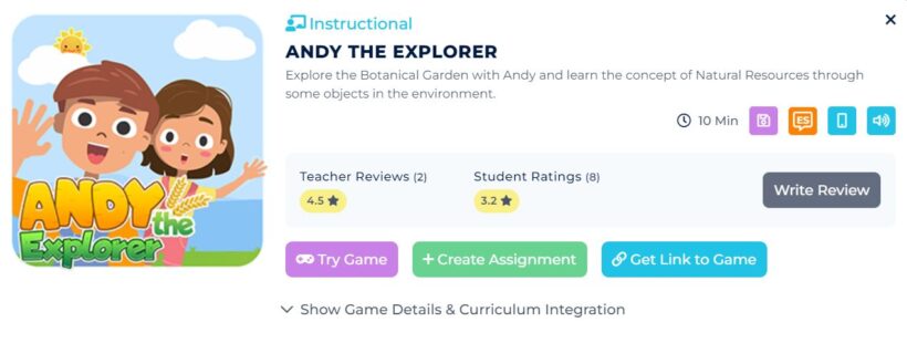 Andy the Explorer — Kindergarten Science (Natural Resources)