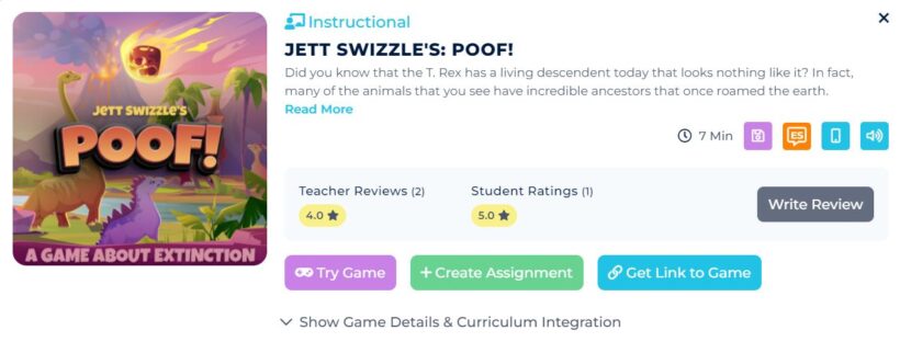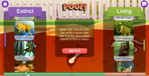 Learn fun facts about extinct animals and their living relatives in Jett Swizzle’s: Poof! Students will learn to match animals that are still alive today with their ancient relatives. Find Jett Swizzle’s: Poof featured further on in this post.