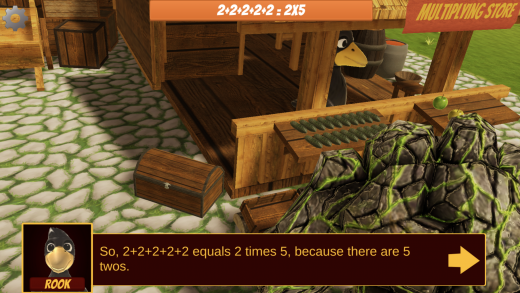 Help Golem buy apples and get a discount at the Rook’s Multiplying Store by solving riddles about basic multiplication! The story guides the player through interactive tasks located in a 3D world.