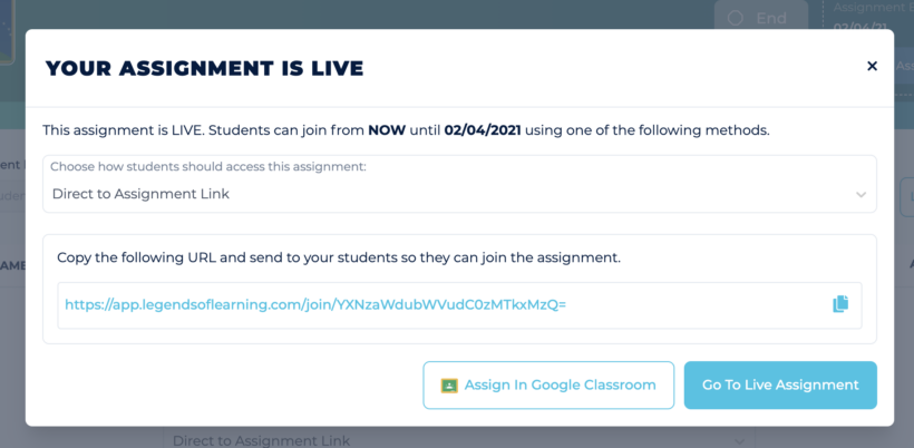 - We know your students access Legends of Learning in many different ways: From Google Classroom, to teacher code, direct assignment link, Clever, Canvas, etc. So now we provide instructions for all of these access methods when an assignment is created!