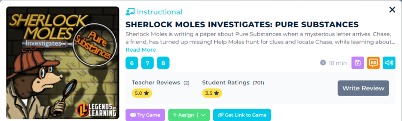 - Join Detective Moles in his quest to find his friend, Chase, while learning more about Pure Substances. Find Sherlock Moles Investigates: Pure Substances featured further on in this post.