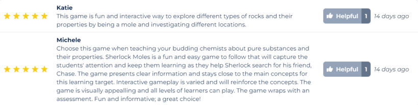Teacher Reviews: don’t forget that you earn Rewards Points for every review you write! So be sure to leave your feedback: you help other teachers pick the right games, you help students to get the best material available, you help us to learn which games we should make more of and you’ll help yourself to some well-deserved rewards! Talk about saving the day!