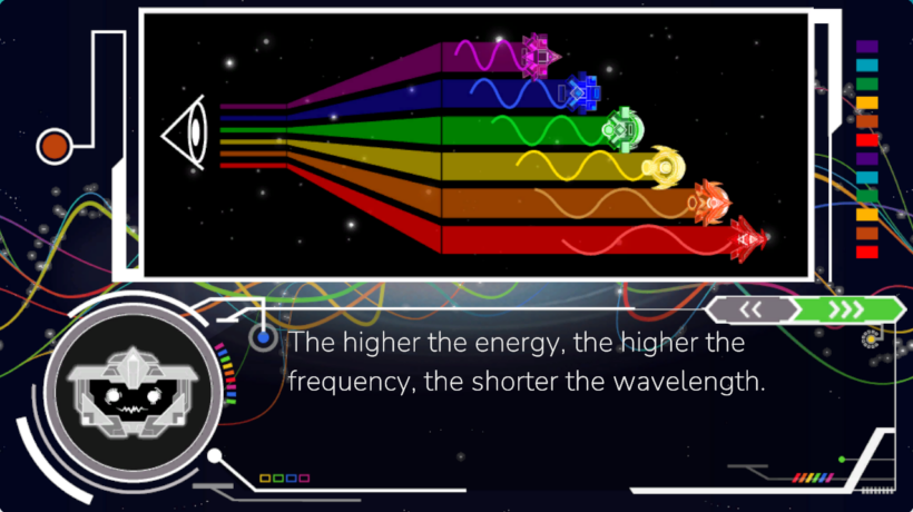 This game is a space adventure about the science of light… but be careful! You’re flying blind and asteroids are coming! Set the correct color spectrum of light to dodge them, defeat the final boss, and apply your knowledge of light waves to overcome any challenge in the game! Are you ready?
