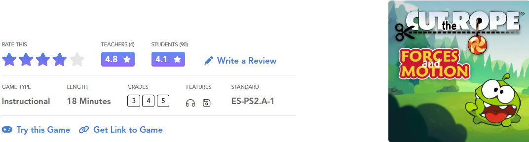Both of these Cut the Rope minigames bring the perfect blend of engagement and education, giving your students exciting new ways to explore science and math content. Om Nom might lead the adventure, but your learners are the ones building real understanding along the way.