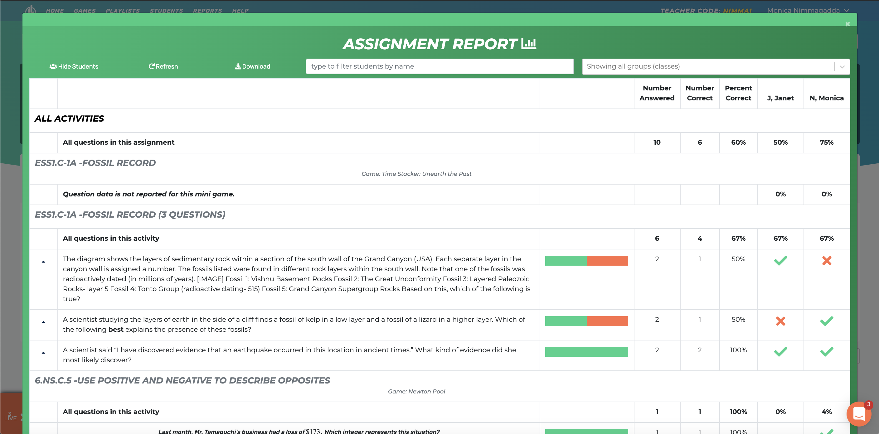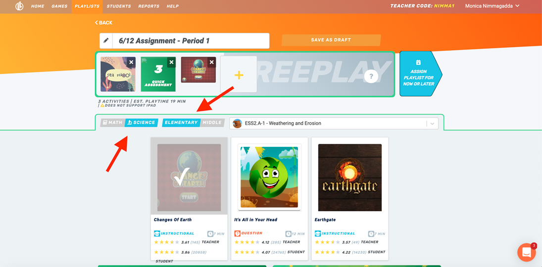 Premium users can now combine multiple standards in an assignment. This feature is perfect for end of year tests or beginning of the school year review sessions. Switch between Math/Science and Elementary/Middle School content from directly within the playlist builder.