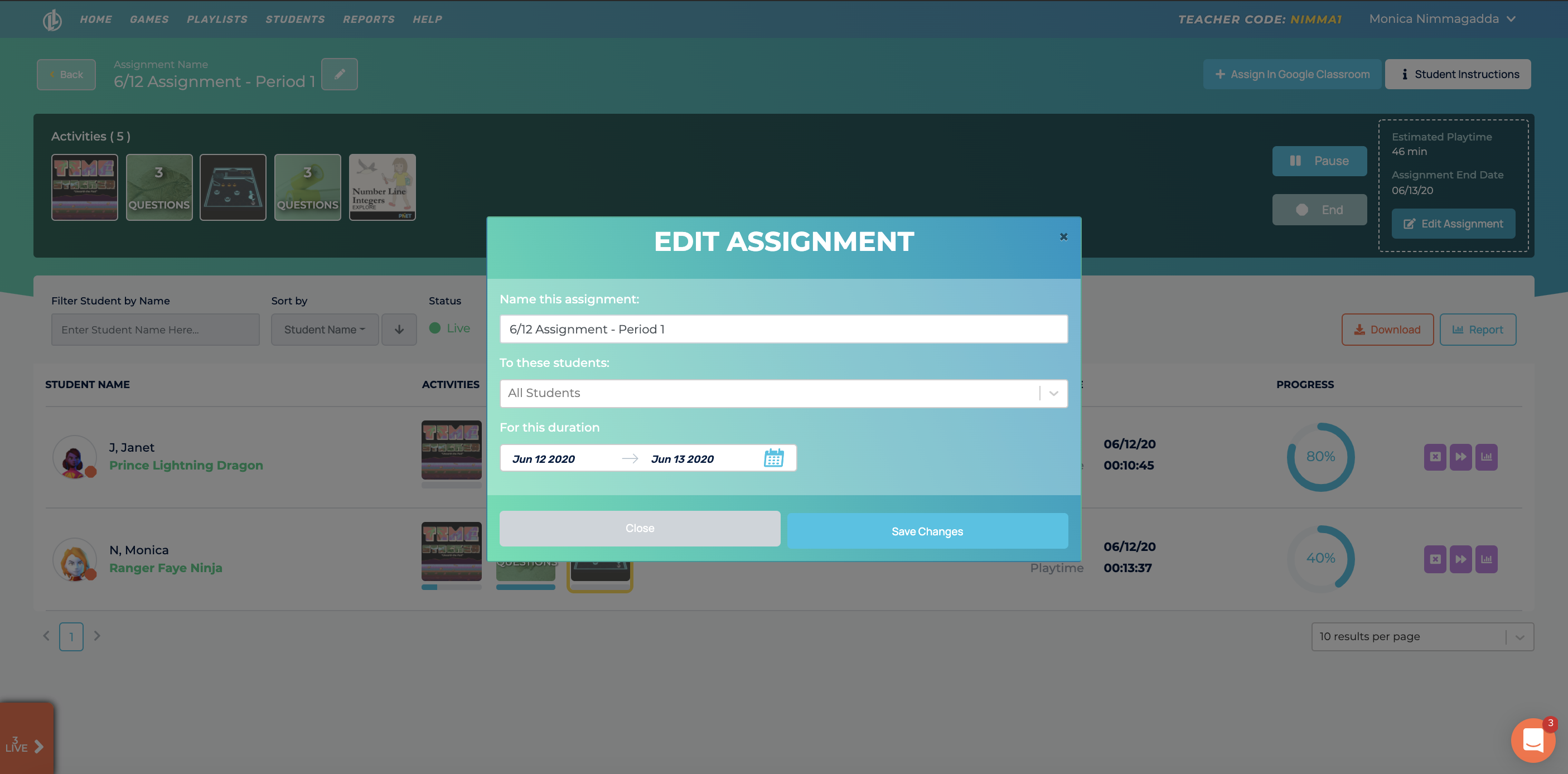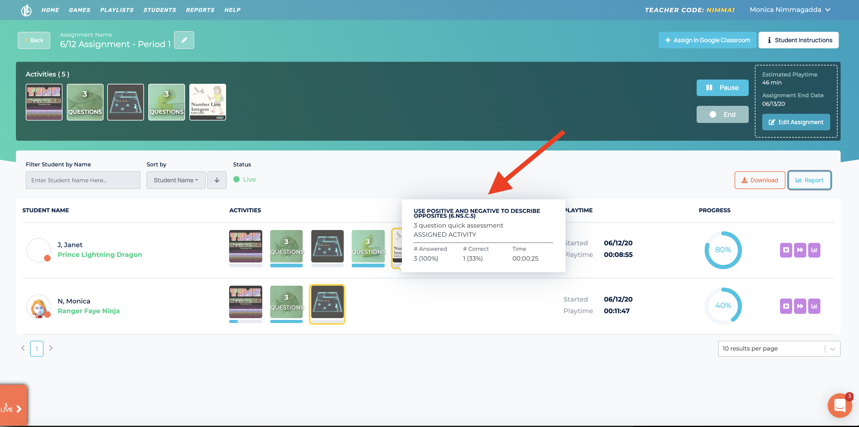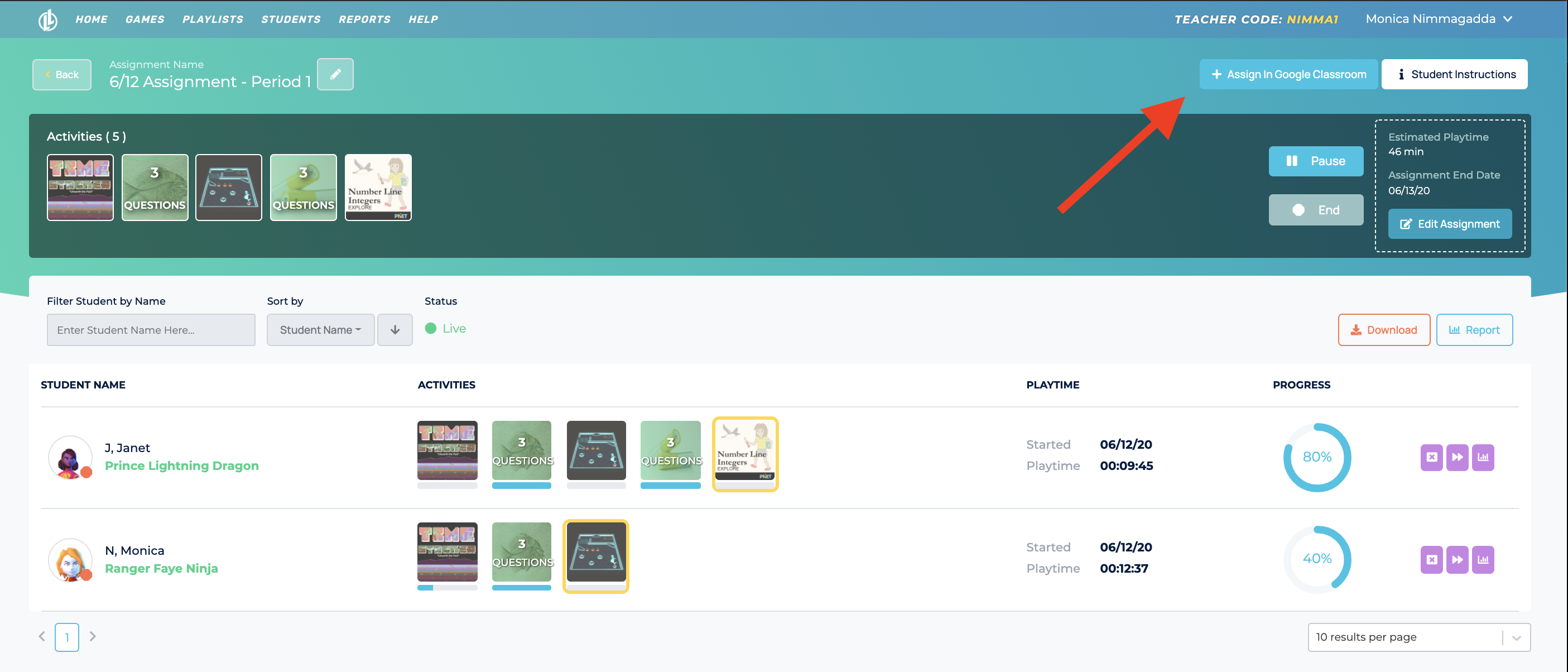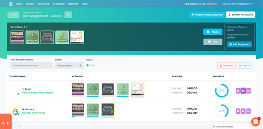 We redesigned our live view. Teachers can now easily track student progress, edit the assignment information, view data, and share to Google Classroom all from one place!