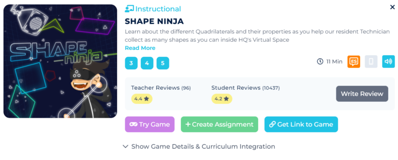 Shape Ninja — Elementary Math (Define Quadrilaterals By Similarities)