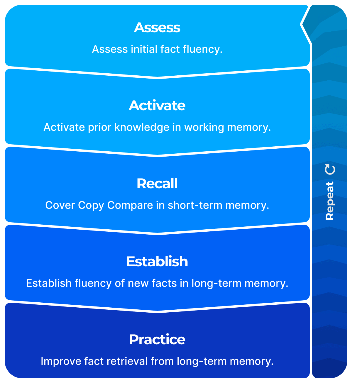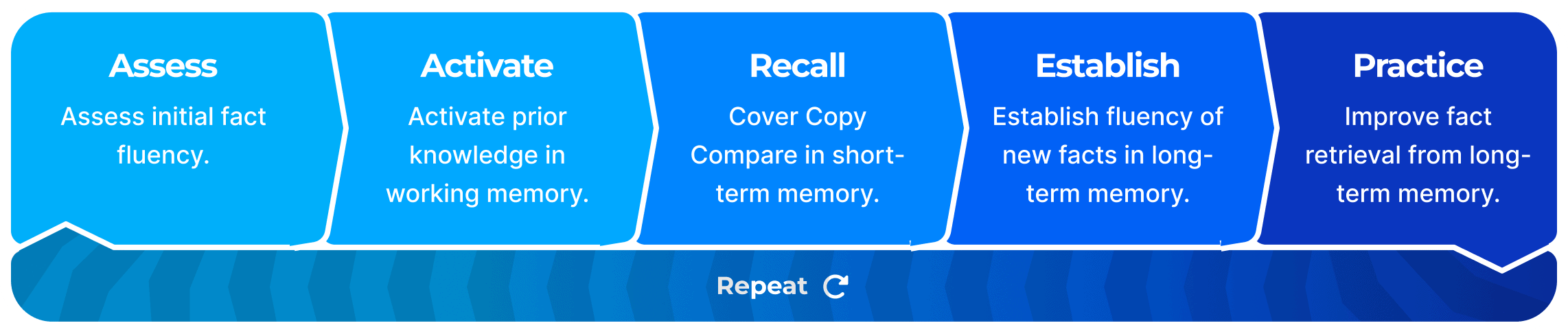 An adaptive program guides learners to master facts after developing counting, deriving, and operational skills.