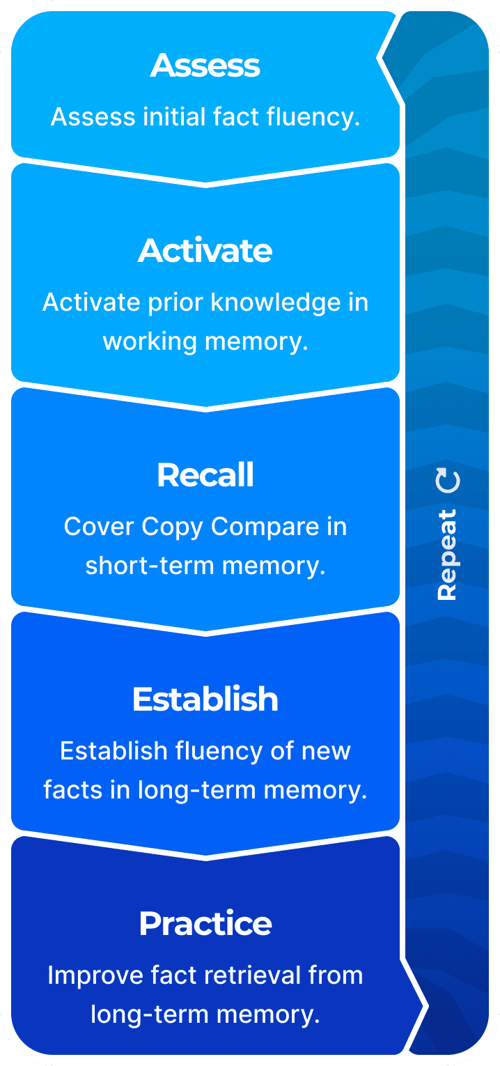 Mastered facts are employed in activities, facilitating problem-solving over factual derivation.