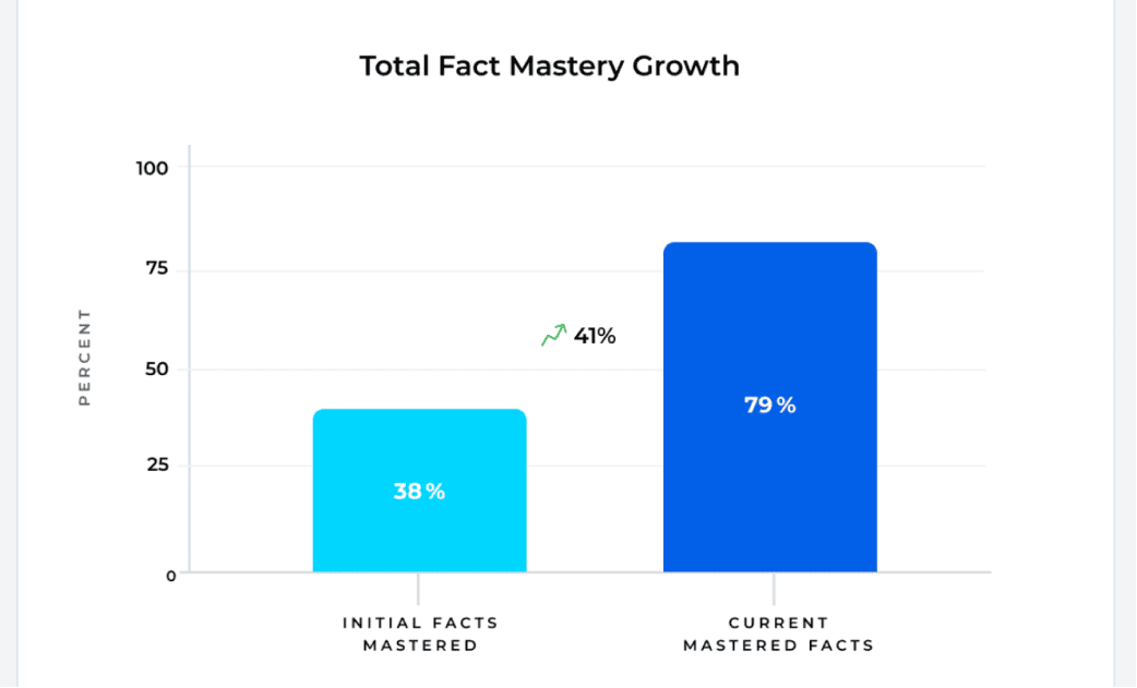 Tables show assessed and mastered facts in real-time. Also customize mastery range.
